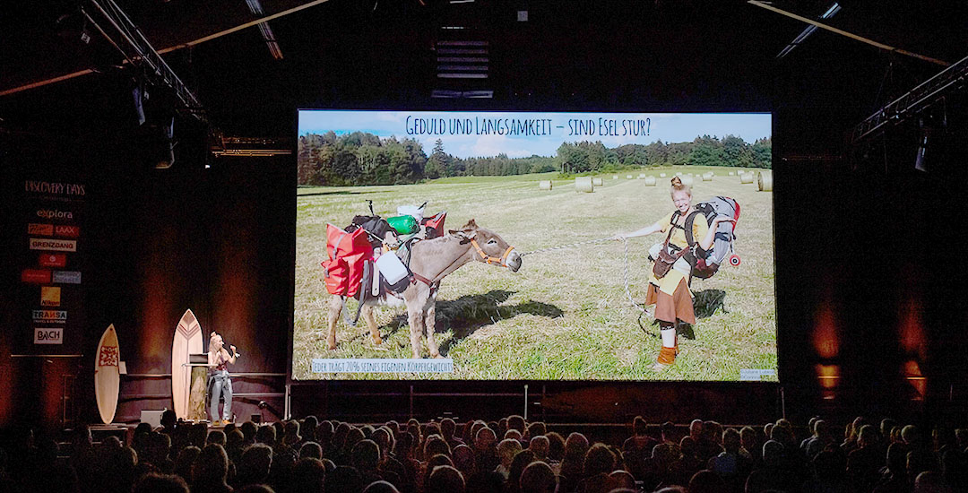 «Wir wussten nie, wie weit wir heute kommen würden, wie der Weg verläuft, welchen Herausforderungen wir begegnen oder wo wir schlafen würden. Aber es hat immer geklappt!» Ohne jemals zuvor gewandert oder in den Bergen gewesen zu sein, überquert Lotta mit Jonny die Alpen. Trotz ihrer Angstzustände in der Dunkelheit, meistert sie mit ihrem treuen Langohr den Weg in 80 Tagen von München bis an die Adriaküste. Ein Vortrag voller Lebensfreude und Ehrlichkeit, Rührung und quietschender Eselliebe, mit dem Lotta Lubkoll bei den Discovery Days den 1. Preis gewann.